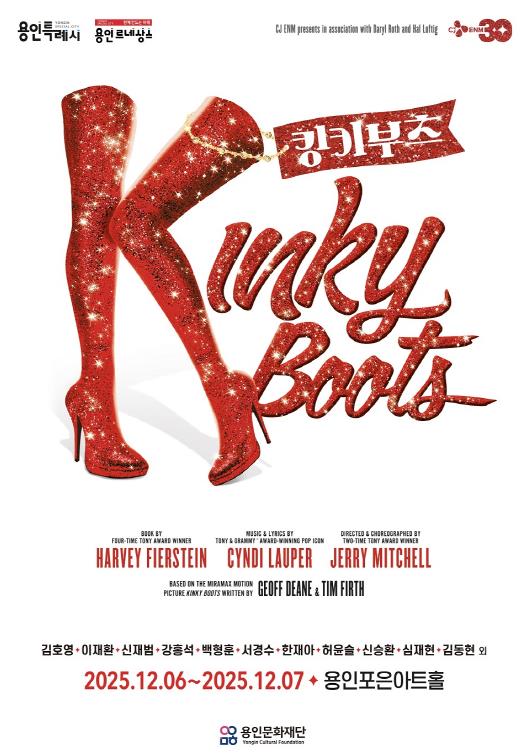 [메이저뉴스]용인문화재단은 오는 12월 6일부터 7일까지 용인포은아트홀에서 뮤지컬 ‘킹키부츠’를 선보인다. 이번 공연은 양일간 오후 2시와 7시, 총 4회 진행되며, 관람 연령은 만 8세 이상으로 미취학 아동은 입장이 불가하다.