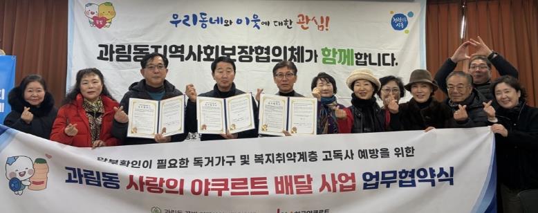 [메이저뉴스]시흥시 과림동 지역사회보장협의체는 지난 1월 19일 ㈜한국야쿠르트 역곡점과 복지 취약계층 안부 확인을 위한 ‘사랑의 요구르트 배달’ 사업 추진 업무협약을 체결했다.