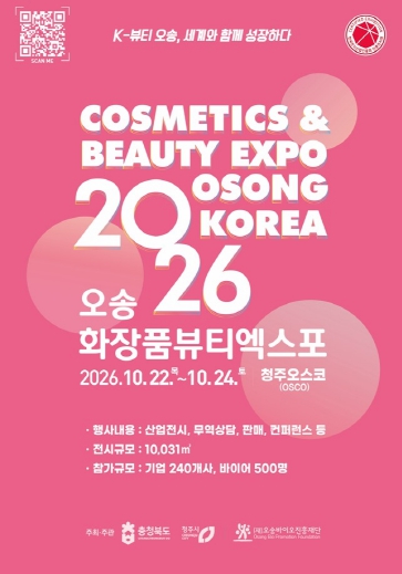 [메이저뉴스] 충북도와 청주시는 1월 14일부터 화장품·뷰티산업의 트렌드를 선도하고, 국내 화장품 기업의 판로 개척을 지원하는 ‘2026 오송화장품뷰티엑스포’의 참가기업 및 공식후원사 모집을 시작한다.