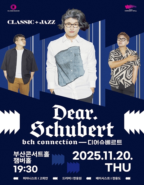 [메이저뉴스] 부산시 클래식부산은 오는 11월 20일 저녁 7시 30분 챔버홀에서 ▲피아니스트 고희안 ▲드럼 한웅원 ▲베이스 정용도와 클래식부산 오케스트라 수석들이 주축이 된 '부산콘서트홀 커넥션-디어 슈베르트'의 공연을 개최한다고 밝혔다.