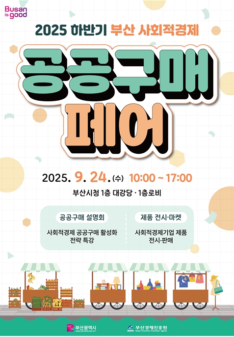 [메이저뉴스] 부산시는 내일(24일) 오전 10시 시청 1층 대강당과 로비에서 '2025 하반기 부산 사회적경제 공공구매 페어'를 개최한다고 밝혔다.