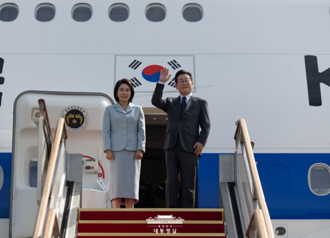 [메이저뉴스]이재명대통령이 탑승한 공군 1호기가 미국 뉴욕으로 출발했다.