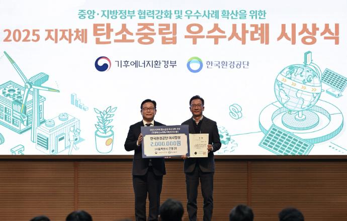 [메이저뉴스]서울 은평구는 지난 17일 ‘2025 지자체 탄소중립 콘퍼런스’에서 탄소중립 이행성과 부문 우수기관으로 선정되어 한국환경공단 이사장상을 받았다고 밝혔다.