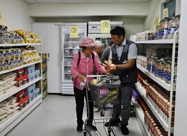 | ▲ '그냥드림' 시범 사업장으로 선정된 광명푸드뱅크마켓 센터에서 취약계층에 식품을 지원하고 있는 모습 |