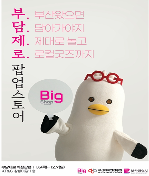 [메이저뉴스]부산시와 (재)부산디자인진흥원은 부산의 감성을 체험할 수 있는 '부담제로, 브랜드숍 반짝 매장(팝업스토어)'을 오늘(6일)부터 12월 7일까지 케이티앤지(KT·G) 상상마당 부산(부산진구 부전동) 1층에서 운영한다고 밝혔다.