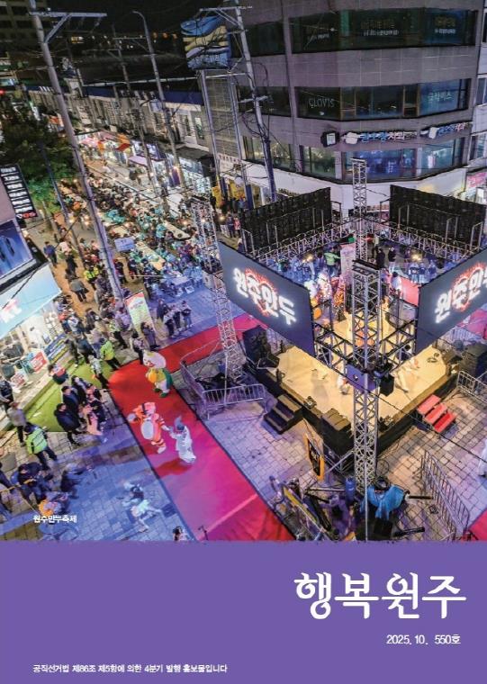 [메이저뉴스]행복원주 10월호에서는 새롭GO, 변화GO, 채우GO, 늘리GO 민선8기 시민과 함께한 3년을 경제·교육·교통·안전·복지·환경 분야로 담았으며, 원주에서 열리는 축제 행사 안내와 다양한 원주 소식도 소개했다.