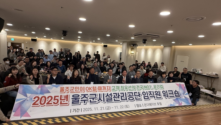 [메이저뉴스] 울주군시설관리공단(이사장 최인식)은 11월 21일 및 22일 양일간 울산 울주군 서생면 소재 온더웨이브에서, 이순걸 울주군수와 최길영 울주군의회 의장이 참석한 가운데,“전국 NO1.공기업, 그 가치를 위한 시작”이란 슬로건으로, 임직원 120여명이 모여 2025년 임직원 워크숍(이하 “워크숍”이라 함)을 개최했다.