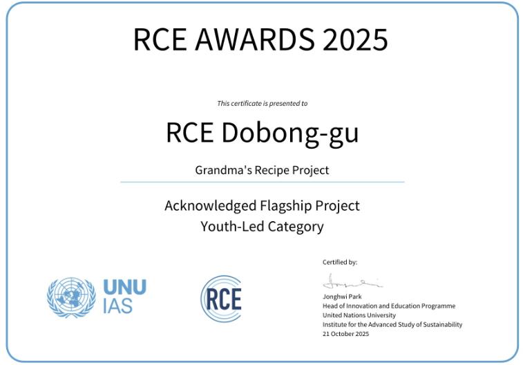 [메이저뉴스]서울 도봉구가 ‘2025 RCE 어워드’(RCE Award)에서 ’우수 프로젝트‘(Acknowledged Flagship Project) 상을 수상했다.