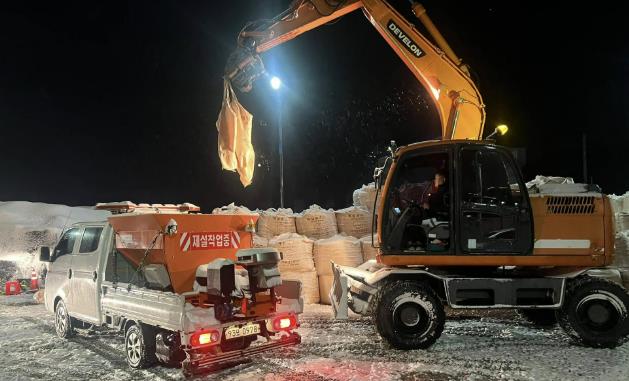 제설제 575톤, 소금 2,213톤, 염수 480톤이 마련됐으며, 제설 장비는 차량 30대, 굴삭기 2대, 살포기 30대, 제설기 224대가 운영 준비를 마쳤다.