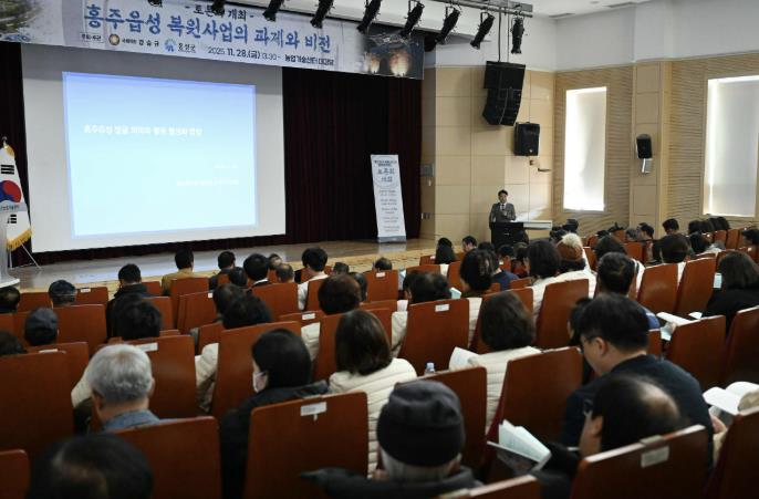 [메이저뉴스]홍성군은 ‘홍주읍성 복원사업의 과제와 비전 토론회(이하 토론회)’가 지난 28일 홍성농업기술센터 대강당에서 지역주민과 관련 연구자 등 200여 명이 참석한 가운데 성황리에 마무리됐다고 밝혔다.