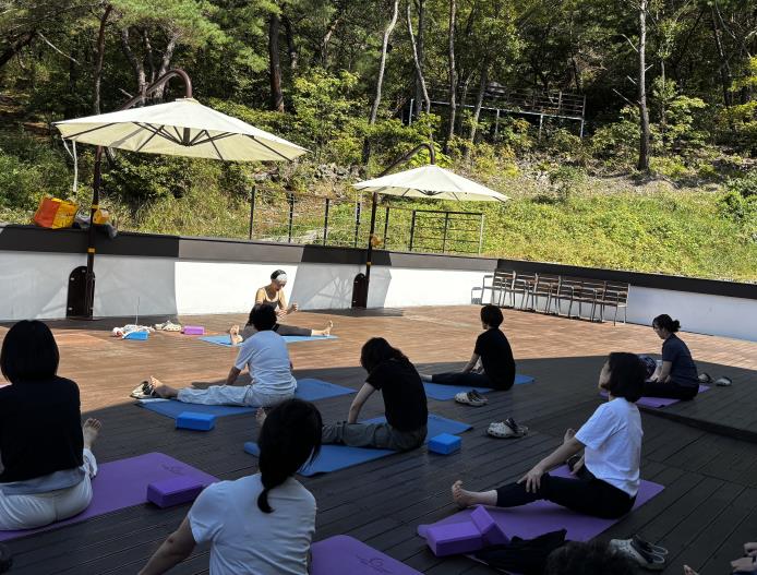 [메이저뉴스]충북 단양군 단성면 소선암 치유의 숲에서 지난 27일 진행된 숲속 요가 프로그램이 성황리에 마무리됐다.