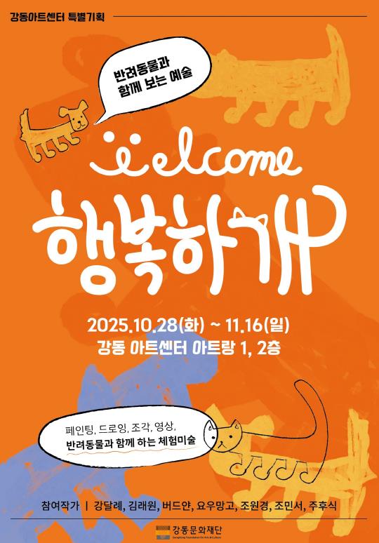 [메이저뉴스]강동문화재단은 오는 10월 28일부터 11월 16일까지 강동아트센터 아트랑에서 반려동물과 함께 예술을 경험할 수 있는 전시 《행복하개展》을 선보인다.