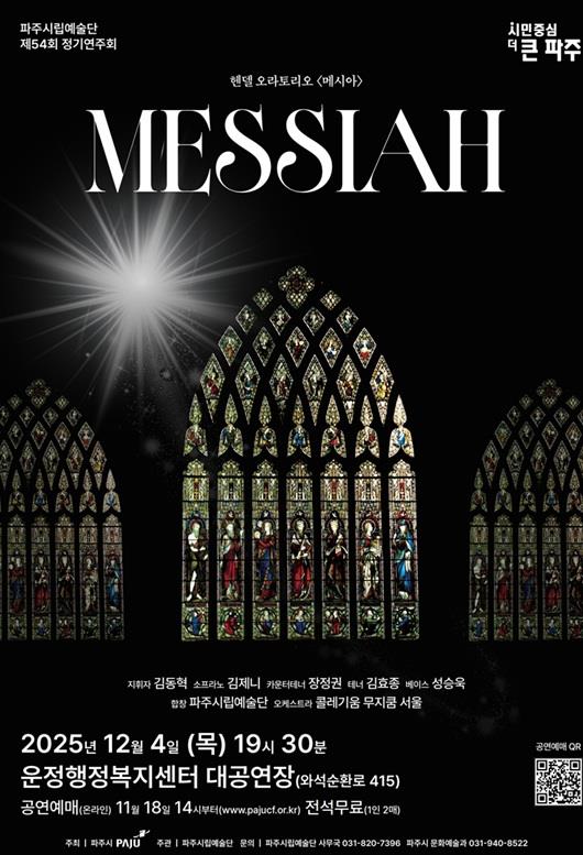 헨델이 1741년에 작곡한 오라토리오 ‘메시아’는 예언과 탄생, 수난과 구속, 부활과 영원한 생명이라는 세 부분으로 나누어 노래하며, 오늘날까지도 널리 사랑받는 명작 중 하나다. 특히, 이번 연주는 파주에서 처음으로 전곡이 연주된다는 점에서 더욱 의미가 크다.
