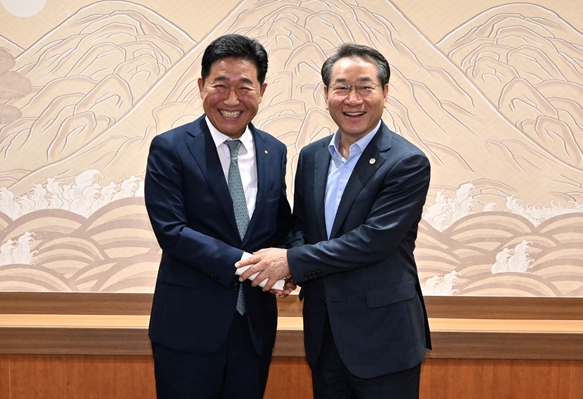 | ▲ 유정복시장이 박종범 세계한인경제무역협회 회장을 만나(25.7.25) 10월 개최되는 세계한인인경제인대회 추진 상황을 점검하고 있다 |