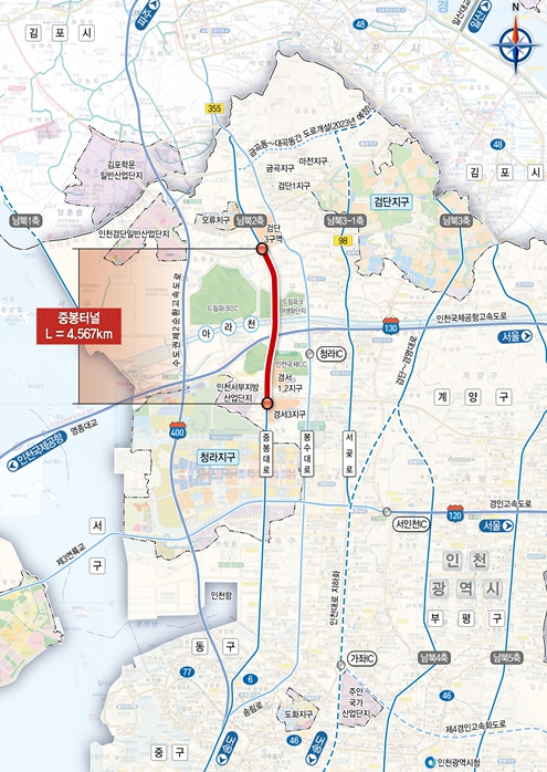 인천시는 앞서 해당 사업 구간을 2021년 7월에 국토교통부로부터 “제4차 대도시권 교통혼잡도로 개선사업(국토교통부)”으로 지정받아 국비 890억 원을 확보했다.