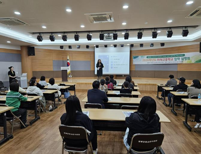 [메이저뉴스]교육발전특구 시범지역 사업으로써 마차고등학교는 지난 21일 영월청소년수련관에서 중학생 학부모를 대상으로 2026학년도 교육과정 설명회를 개최하며 지역의 보건·간호 인력 양성을 위한 선이수 학점제의 순조로운 추진을 이어가고 있다.