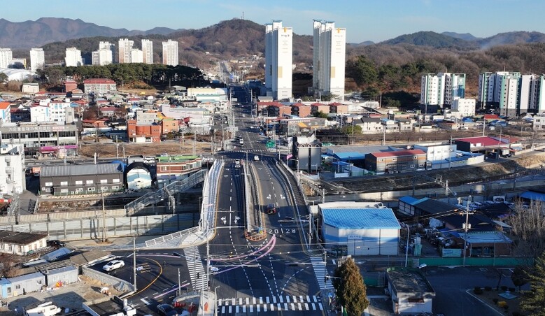 특히 이번 공사로 기존에 인접 국도4호선에 접속되는 구간의 단차로 인해 이 구간을 통과하는 차량의 통행불편과 교통약자 이동편익 증진 목적으로 운행중인 저상버스의 운행 불편이 말끔히 해소되어 안전한 도로환경이 조성됐다.