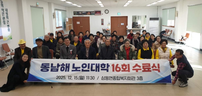 [메이저뉴스]동남해노인대학이 15일 삼동면종합복지회관 3층 회의실에서 제16회 수료식을 개최했다.