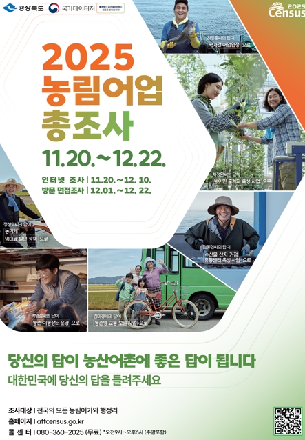 [메이저뉴스]경상북도는 11월 20일부터 12월 22일까지 도내 모든 농가·임가·어가와 읍면지역의 행정리를 대상*으로 ‘2025년 농림어업총조사’를 실시한다.