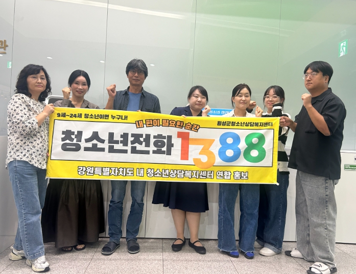[메이저뉴스]횡성군청소년상담복지센터는 청소년상담전화 ‘1388’에 대한 인식을 제고하고 도내 청소년안전망을 강화하기 위해 지난 24일 강원특별자치도 내 13개 청소년상담복지센터와 함께 연합 홍보 캠페인을 실시했다고 밝혔다.