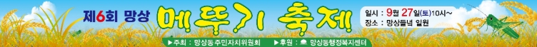 [메이저뉴스]동해시는 오는 27일 친환경 유기농법을 실천하고 있는 망상뜰(초구동 348-1번지 일원)에서 “메뚜기”를 주제로 하여 제6회 망상 메뚜기축제를 개최한다고 밝혔다.