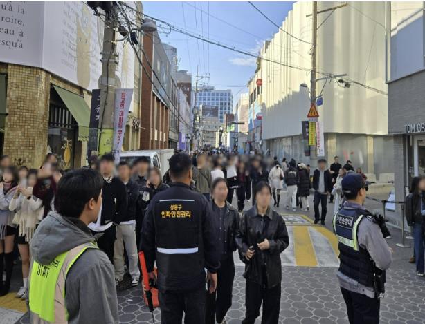 구는 인파감지 지능형 CCTV 100대 가운데 96대를 성수동 일대에 집중 배치해 24시간 관제하고 있으며, 인파가 특정 구간에 정체될 경우 스피커 안내 방송을 통해 즉각 분산을 유도하고 있다. 여기에 더해 다중인파 안전관리를 전담하는 기간제 근로자 5명을 배치해 현장을 상시 순찰하며, 통행 흐름이 막히거나 특이 상황이 발생하면 현장에서 직접 질서를 관리하도록 했다.