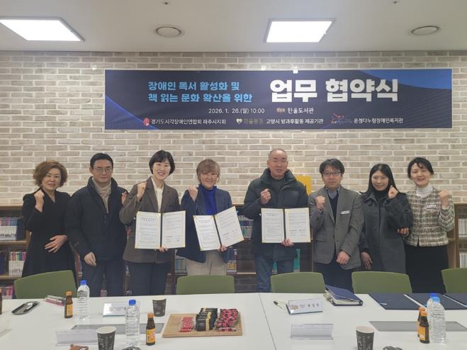이재면 교하도서관장은 “이번 업무협약을 통해 지역 장애인 단체와 긴밀히 소통해 장애인의 독서문화 활성화에 기여하겠다”라며, “협력과 연대에 기반한 장애 특화사업이 질적으로 한 단계 더 발전하기를 기대한다”라고 밝혔다.