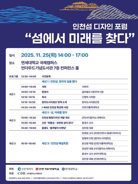 이어지는 두 번째 세션에서는 ‘섬, 미래를 찾다’를 주제로 인천섬에 적용할 수 있는 디자인·브랜딩 전략을 다룬다.