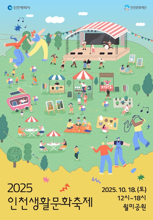 [메이저뉴스]인천광역시와 인천문화재단이 오는 10월 18일 오후 12시부터 6시까지, 인천 중구 월미공원 일대에서 ‘2025 인천생활문화축제’를 연다.