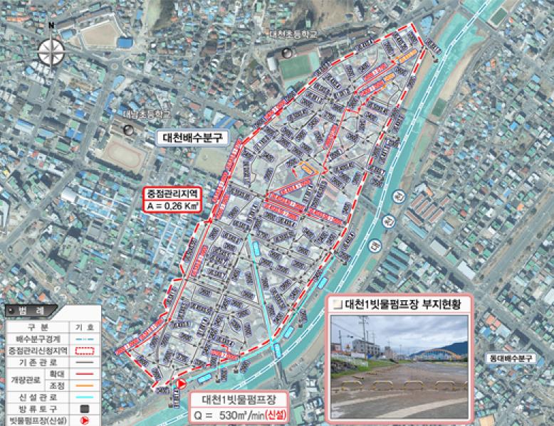 | ▲ 동부시장 일대(대천배수분구) 침수피해 예방을 위한 하수도정비 중점관리지역 |