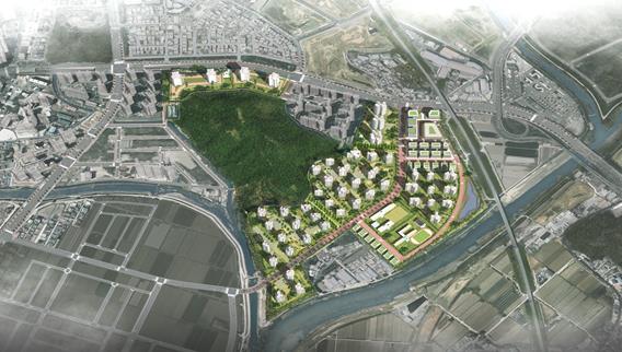 도시기반시설로는 학교용지(고등학교 1만2,000㎡, 초등학교 1만3,350㎡), 도로(13개 노선, 4만4,170㎡), 공원 및 녹지(6개소, 16만3,874㎡), 주차장(3개소, 7,047㎡), 유수지(1개소, 1만3,163㎡) 등이 조성된다.