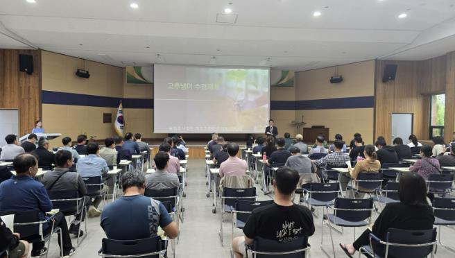 [메이저뉴스]상주시농업기술센터는 9월 25일 대강당에서 농업인 100여 명이 모인 가운데'2025년 품목별 전문교육 고추냉이과정'을 실시했다.