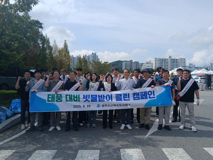 [메이저뉴스]원주시상하수도사업소는 쾌적한 도시환경 조성과 건강한 수생태계 보전을 위해 지난 29일 소장을 비롯한 직원 60여 명과 함께 태풍 대비 ‘빗물받이 클린’ 캠페인을 전개하고, 환경부에 하수 중점관리지역 지정을 신청했다.