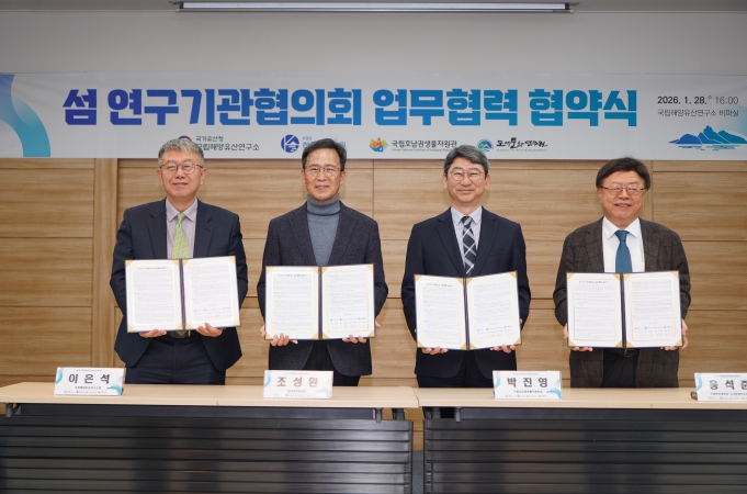 [메이저뉴스] 기후에너지환경부 산하 국립호남권생물자원관(관장 박진영)은 국립해양유산연구소, 한국섬진흥원, 국립목포대학교 도서문화연구원과 함께 2026년 1월 28일 국립해양유산연구소(전남 목포시 소재)에서 '섬 연구기관 협의회' 출범을 위한 업무협약을 체결했다.