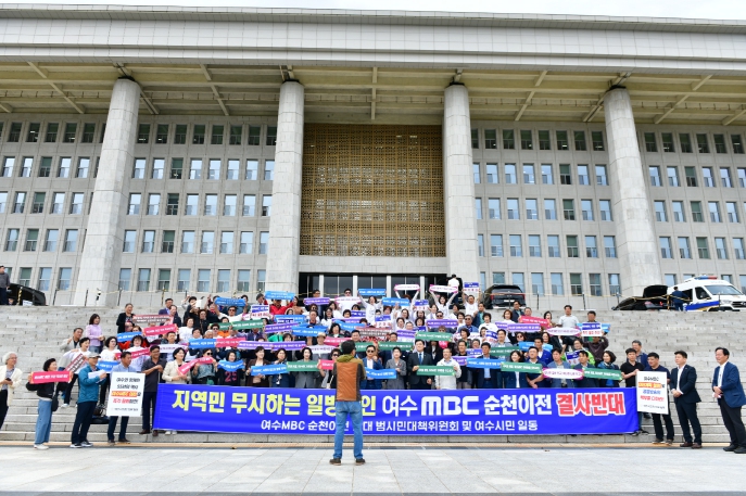 이번 항의 방문은 여수MBC 순천이전 반대 범시민대책위원회의 주도로, 백인숙 의장(범시민대책위원회 공동위원장)과 문갑태 부의장을 비롯해 고용진·구민호·이미경·박성미 위원장 등 여수시의원들도 시민들과 뜻을 함께했다.