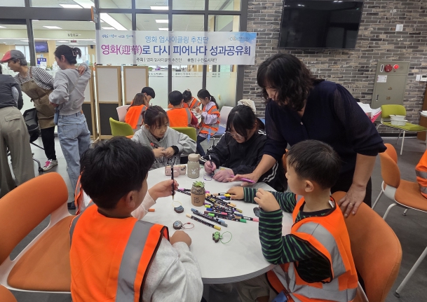 [메이저뉴스]장안구 영화동 마을만들기협의회는 지난 14일, 영화동 행정복지센터에서 수원시다함께돌봄센터 4호점 어린이들과 함께하는 업사이클링 체험 행사를 진행했다.