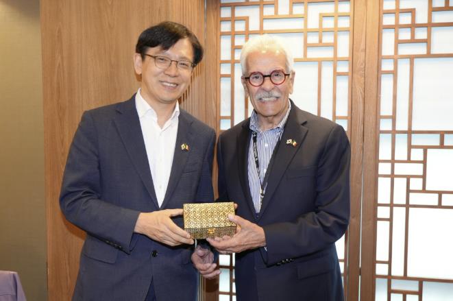 | ▲ 현근택 수원시 제2부시장(왼쪽)과 루이스 곤잘레스 아레날 멕시코 학습도시연맹 사무총장이 함께하고 있다. |