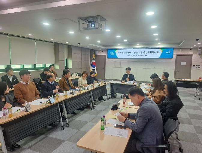 이날 회의에서는 ▲태양광 발전소 확산에 따른 주요 갈등 요인 파악 ▲갈등 예방 및 상생 확대를 위한 공동 목표 설정 ▲전문가 대안 제시 및 위원 간 의견 공유 ▲파주시 지역 특성을 반영한 대응 과제 도출 등 다양한 안건이 논의됐다.