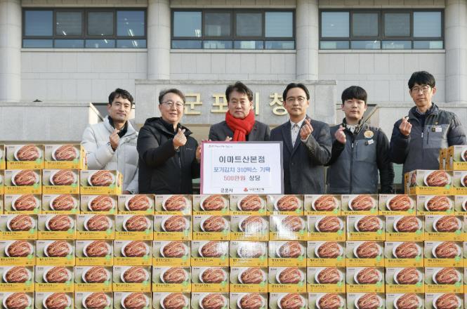 하은호 군포시장은 “매년 연말이면 지역내 취약계층을 위해 사랑의 김장김치를 후원하는 이마트 산본점에 깊이 감사드린다. 기탁해 주신 물품은 꼭 필요한 분들에게 잘 전달하겠다”고 말했다.