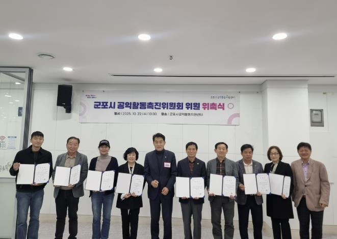 공익활동촉진위원회는 ‘군포시 공익활동 촉진 및 지원에 관한 조례’에 의해 설치운영되며 공익활동지원센터 사업 및 운영 등 군포시 공익활동 촉진과 관련된 사안에 대한 심의자문의 역할을 담당하게 되고 임기는 오는 2027년 10월까지 2년간이다.