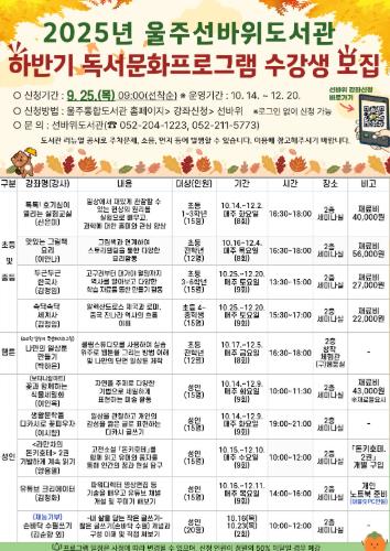프로그램 참여 신청은 오는 25일 오전 9시부터 울주통합도서관 홈페이지에서 선착순으로 접수한다.