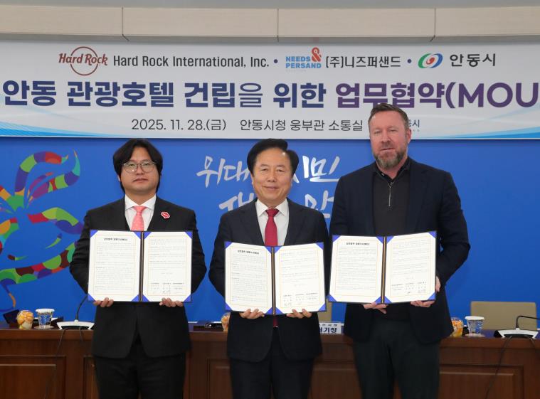 권기창 안동시장은 “세계적인 브랜드인 하드락 호텔의 유치는 안동의 관광 지형을 넓히고 도시 브랜드를 한 단계 격상시키는 계기가 될 것”이라며 “지역 경제 활성화와 신규 일자리 창출 등 실질적인 성과로 이어질 수 있도록 모든 행정적 지원을 아끼지 않겠다”고 강조했다.