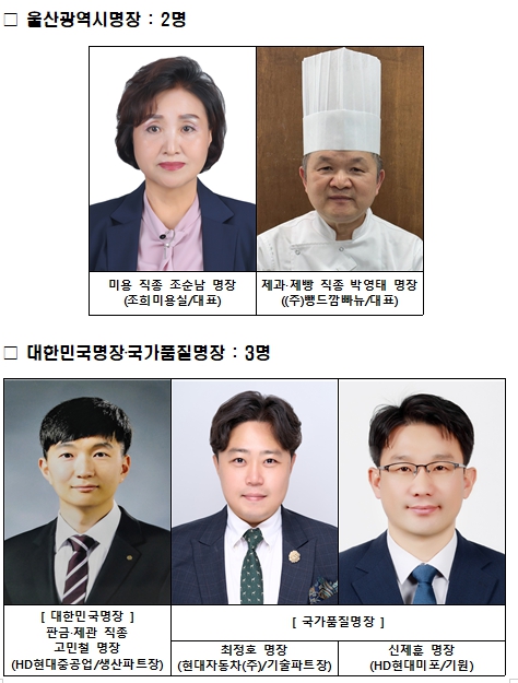 | ▲ 2025년 울산 명장 선정자 프로필 사진 |
