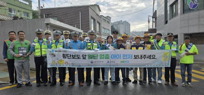 이어 9월 29일 오전 삼척초등학교 후문 일원에서는 ‘아이먼저’ 어린이 안전 캠페인을 펼쳤다. 삼척시와 삼척경찰서, 자율방재단, 안전보안관 등 19명이 참여한 이번 캠페인에서는 등교하는 어린이들을 대상으로 횡단보도 안전보행 지도와 함께 교통안전 수칙과 아동 유괴 예방 홍보 전단지를 배부했다.