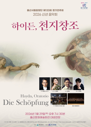 [메이저뉴스]울산시립합창단은 오는 1월 29일 오후 7시 30분 울산문화예술회관 대공연장에서 신년음악회로 제133회 정기연주회인 하이든의 ‘천지창조(The Creation)’를 선보인다.