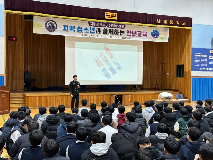 이번 안보교육에는 양현녕 대위를 비롯한 남해함 간부진이 참석했으며, 남해중학교 1~3학년 학생과 교직원 170여 명이 함께했다.