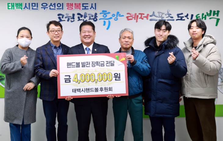 [메이저뉴스]태백시는 태백시핸드볼후원회(회장 우병선)가 지역 핸드볼 꿈나무 육성을 위해 총 400만 원 규모의 핸드볼 발전 장학금을 관내 4개 학교(황지초등학교, 세연중학교, 황지정보산업고등학교, 철암고등학교)에 전달했다고 밝혔다.