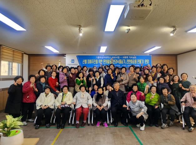 [메이저뉴스]가톨릭상지대학교 RISE사업단과 피움교육문화컨설팅은 2월 12일, 남선면 행정복지센터에서 산불로 심리적․정서적 어려움을 겪고 있는 주민들을 대상으로 문화치유 프로그램을 진행했다. 이날 행사에는 지역 주민 70여 명이 참여해 웃음과 대화를 나누며 뜻깊은 시간을 보냈다.