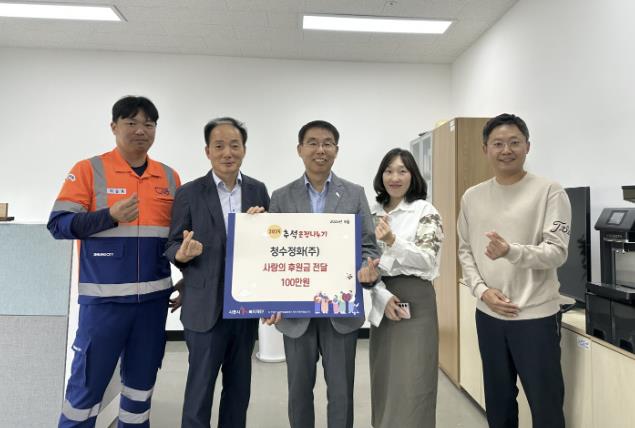 김도영 거북섬동장과 정연임 정왕2동장은 각각 “매년 변함없이 지역사회를 위한 나눔을 실천해 주시는 청수정화(주)에 감사드린다”라며 “전달된 후원금은 필요한 이웃에게 소중히 사용될 것이며, 모두가 더불어 사는 따뜻한 지역사회 구현에 큰 힘이 될 것”이라고 말했다.