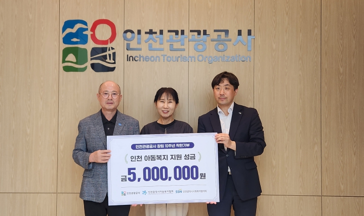 [메이저뉴스] 인천관광공사가 창립 10주년을 맞아 인천지역 아동복지 지원 성금 500만원을 인천아동복지협회에 전달했다.